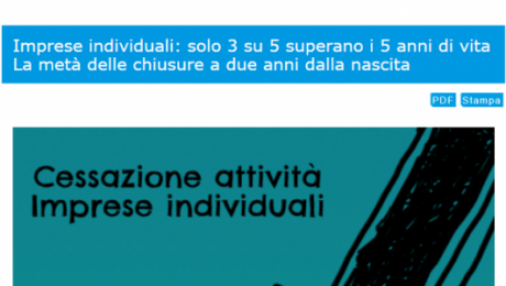 Di 235.985 imprese individuali nate nel 2014 sono state 88.184 quelle cessate entro il 30 giugno 2018 e, di queste, 48.377 entro il 2015. Ma sono molte le iniziative imprenditoriali che non superano il primo anno di età, solo nel 2014 sono nate e morte 20.538 imprese.
