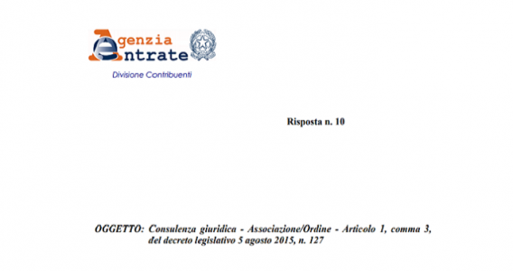 Agenzia delle Entrate – Consulenza giuridica numero 10 del 18 marzo 2019Consulenza giuridica – Associazione/Ordine – Articolo 1, comma 3, del decreto legislativo 5 agosto 2015, n. 127.